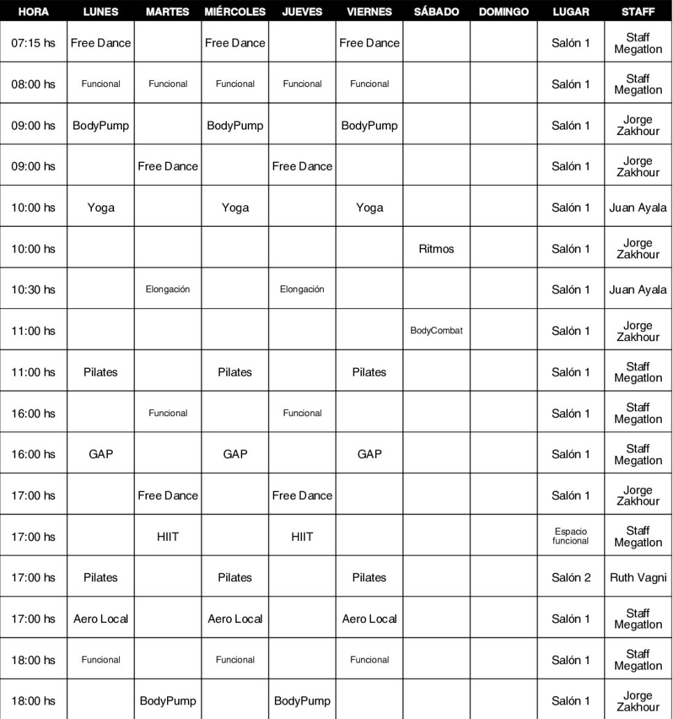 Sedes de MegatlonEn Megatlon Centro se ofrecen actividades como Abdominales, Aero Local, BODYCOMBAT ®, BODYPUMP ®, Elongación, GAP, Gimnasia Acuática, Stretching, Zumba, Entrenamiento funcional, Pilates, Spinning, Yoga, Natación, Grupo de Running, Musculación, HIIT y Cardio.