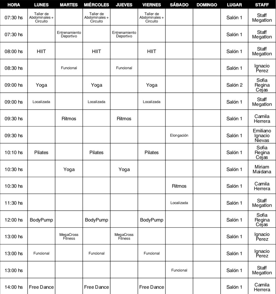 Sedes de MegatlonEn Megatlon Jardin se ofrecen actividades como Abdominales, Aero Local, BODYPUMP ®, Circuit Training, Elongación, GAP, Gimnasia Acuática, Gimnasia Localizada, Ritmos, CrossFit, Entrenamiento funcional, Pilates, Spinning, Yoga, Natación, Boxeo, Grupo de Running, Musculación, HIIT y Cardio.