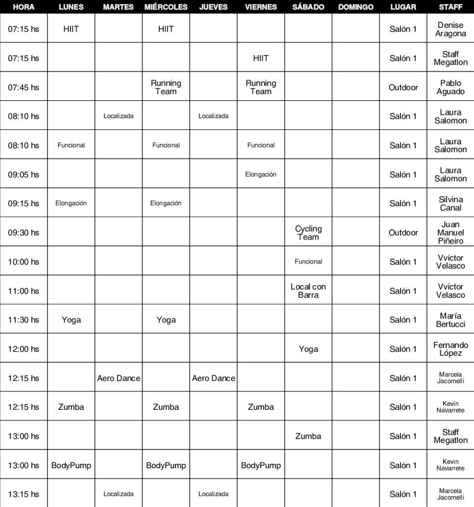 Sedes de MegatlonEn Megatlon Puerto Madero se ofrecen actividades como Aerodance, BODYPUMP ®, Elongación, GAP, Gimnasia Localizada, Zumba, Entrenamiento funcional, Cycle, Spinning, Yoga, Grupo de Running, Musculación, HIIT y Cardio.