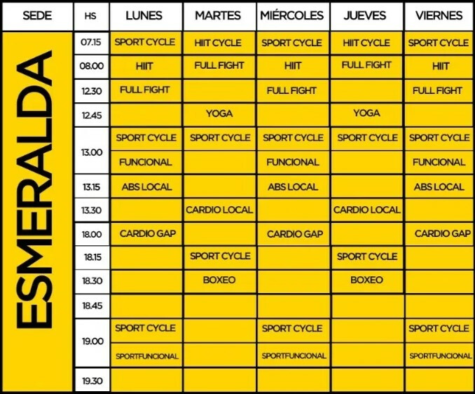 Sedes de SportClubEn SportClub Esmeralda se ofrecen actividades como Abdominales, GAP, Entrenamiento funcional, Indoor Cycle, Yoga, Boxeo, Musculación, HIIT y Cardio.