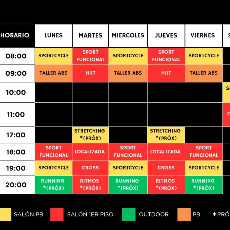 Sedes de SportClubEn SportClub Platense se ofrecen actividades como Abdominales, Gimnasia Localizada, Ritmos, Stretching, Cross Training, Entrenamiento funcional, Indoor Cycle, Running, Musculación, HIIT y Cardio.
